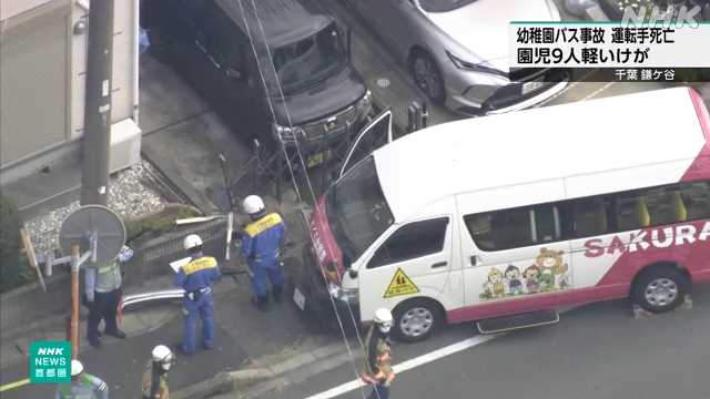 29日朝、千葉県鎌ケ谷市の市道で幼稚園の送迎バスが住宅の塀などに突っ込み、運転していた男性が死亡したほか、乗っていた園児9人が軽いけがをしました。