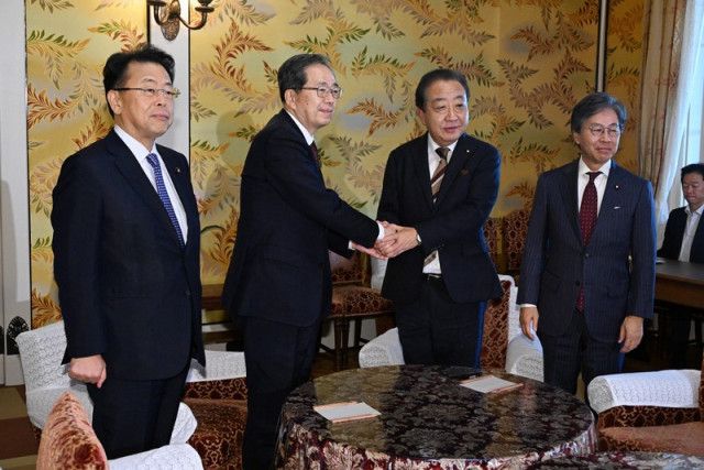 公明の斉藤鉄夫代表は17日、立憲民主党の野田佳彦代表と国会内で会談し、21日召集の臨時国会で企業・団体献金の規制強化法案を国民民主とともに提出することを確認した。外国人の受け入れ問題についても「規制と共生」の方向性を共有した。通常国会で継続審議となった選択的夫婦別姓制度についても実現を目指す方針で一致した。